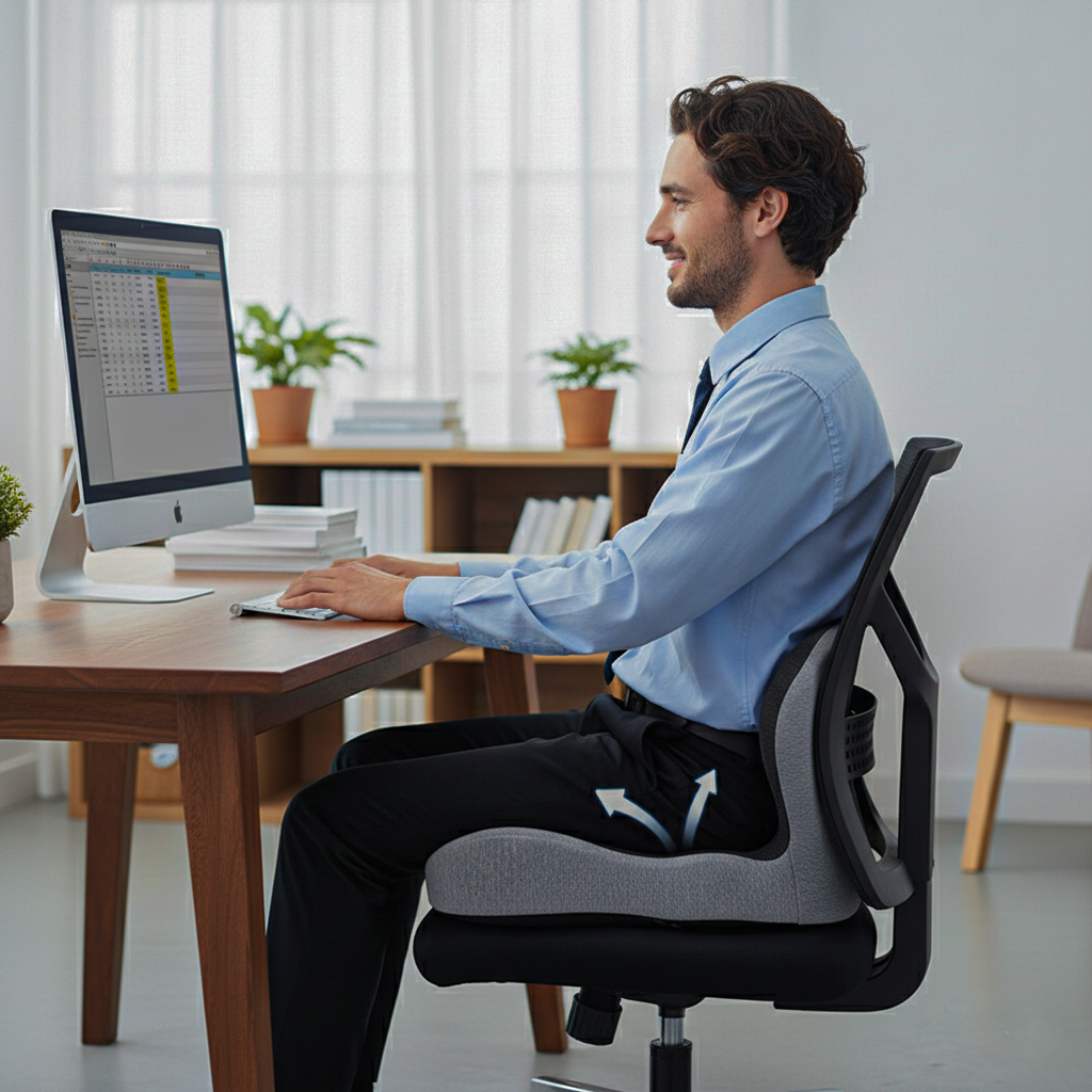 “Stare seduta per ore alla scrivania mi causava sempre dolori alla schiena. Con questo cuscino riesco finalmente a lavorare senza soffrire. È incredibile la differenza!”